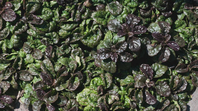 Ajuga pyramidalis 'Metallica Crispa' – Der faszinierende Bodendecker mit dunkel glänzendem Laub und blauen Blüten