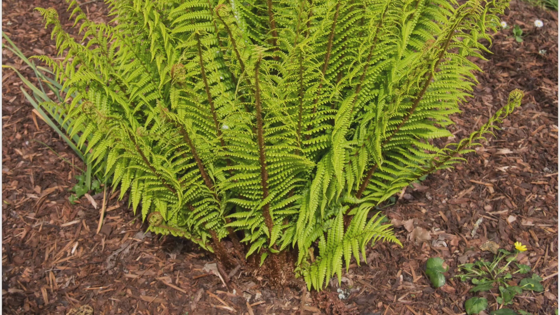 Die fächerartig geschwungenen, tiefgrünen Wedel bringen Struktur und Schönheit in schattige Gartenbereiche.