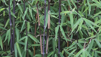 Fargesia nitida 'Black Pearl' ist ein eleganter, immergrüner Bambus mit fast schwarzen Halmen und feinem, dichten Laub. Er wächst horstartig, ist nicht wuchernd und daher ideal für Hecken, Sichtschutz oder als dekorative Solitärpflanze.
