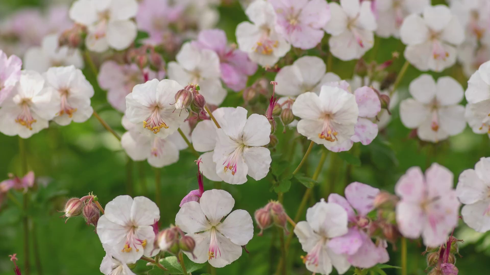 Geranium cantabrigiense 'Biokovo' – Robuster Bodendecker mit zarten, weiß-rosa Blüten für Beete und Kübel