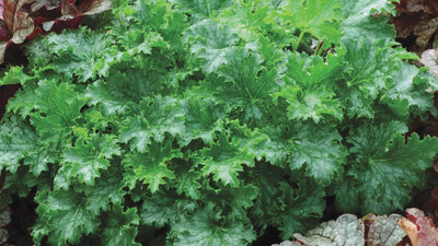 Heuchera Hybride 'Apple Crisp' ist eine kompakte Blattschmuckstaude mit leuchtend grünem, gewelltem Laub. Sie bringt Struktur, Farbe und Lebendigkeit in den Garten und setzt durch ihre auffällige Optik stilvolle Akzente.